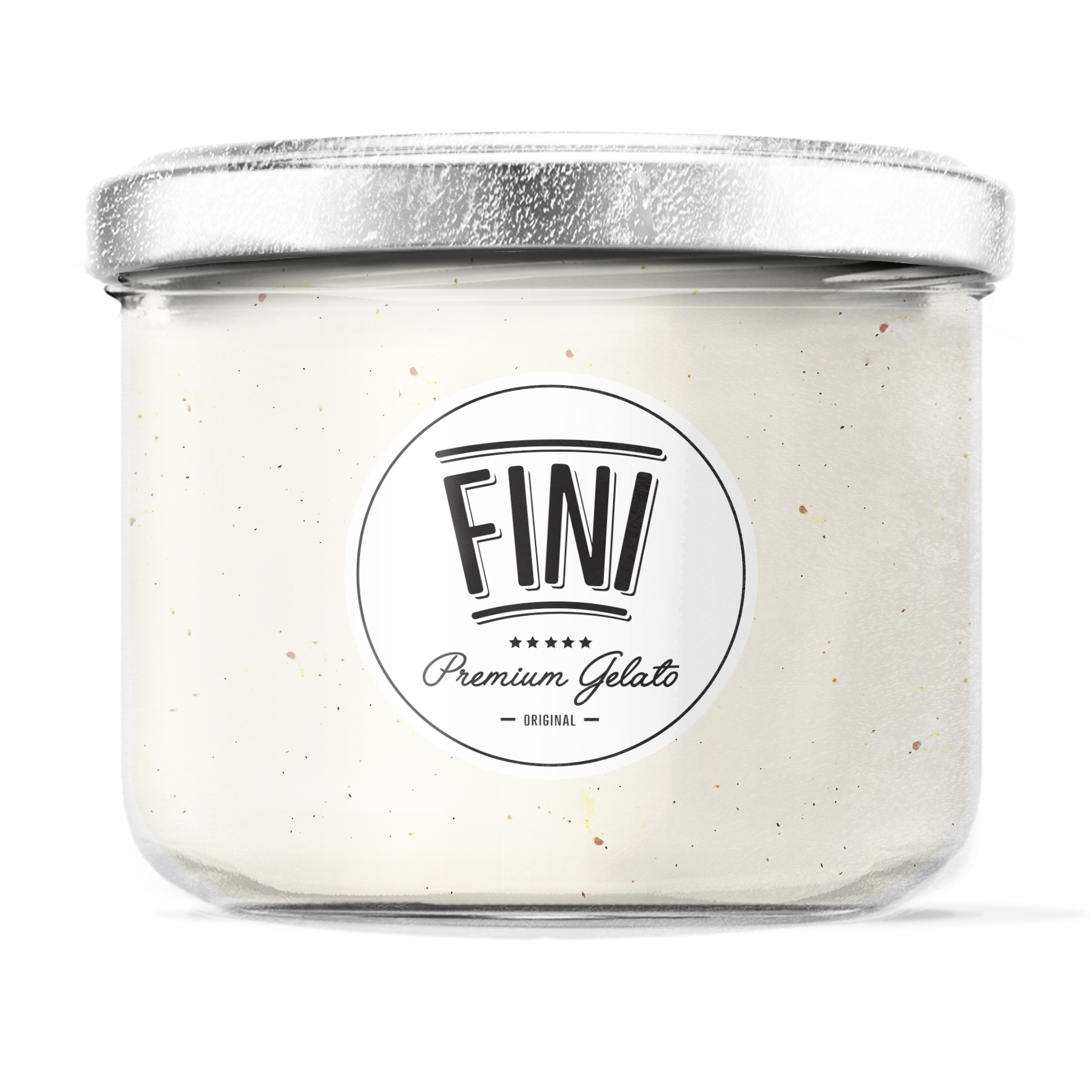 • Frasco de gelado branco em vidro com tampa metálica prateada